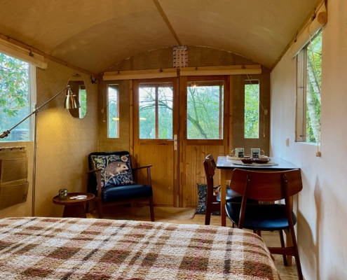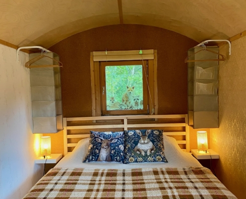 We hebben een extra slaapkamer op wielen die bij te boeken is bij de andere accomodaties, voor als je met meer dan 2 personen wilt verblijven, of voor als je logees wilt ontvangen tijdens je verblijf. We noemen deze ‘extra slaapkamer’: De Wildhut.